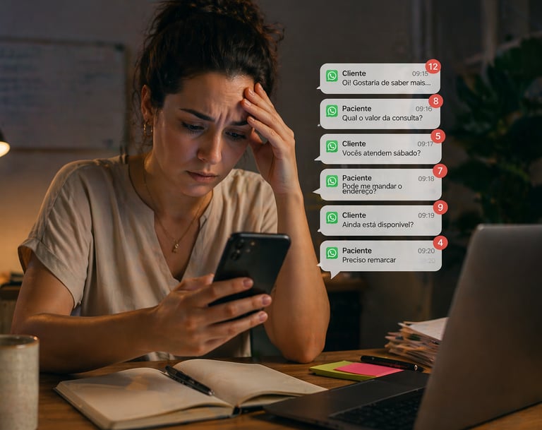 Quando você está preso no WhatsApp, seu negócio para de evoluir. O tempo gasto no operacional limita seu crescimento.